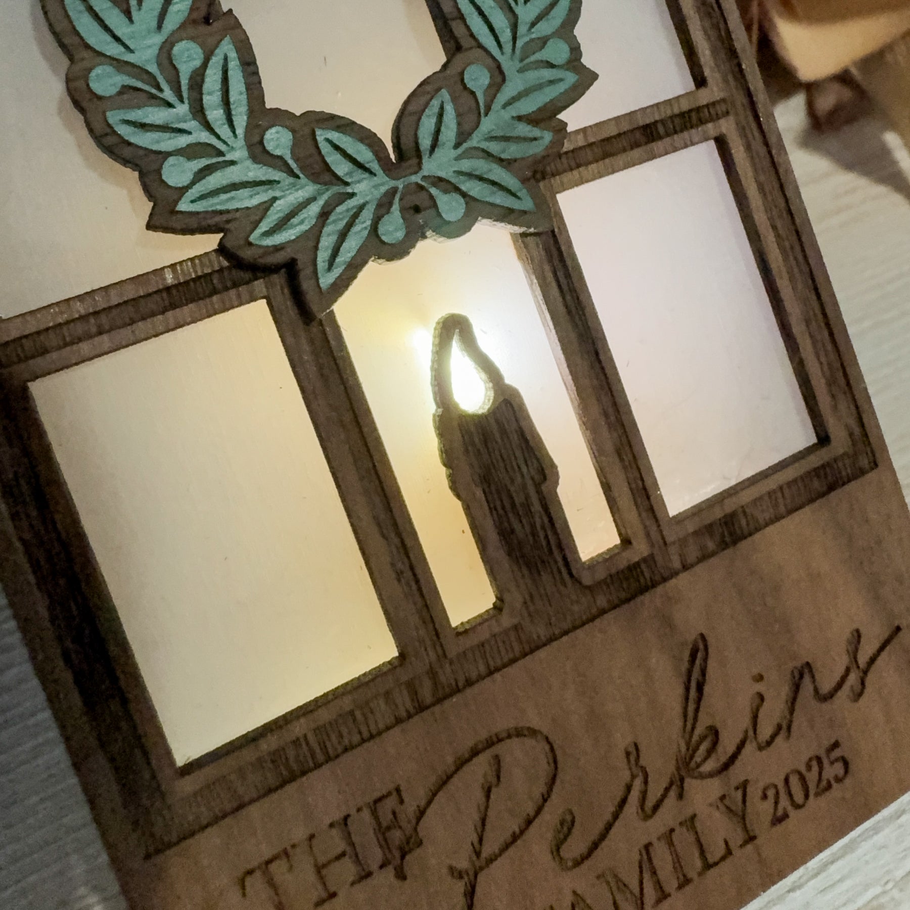 Experience the charm of nostalgic holiday traditions with this Christmas Candle - Light Up ornament. Designed to evoke the classic image of a candle glowing in the window, this piece is expertly crafted from multiple layers of solid walnut and acrylic, offering both durability and a rich, warm aesthetic. Its integrated battery-operated light softly illuminates the candle, creating a cozy ambiance that enhances any festive décor. Perfect for adding a personalized touch to your holiday home or gifting to someone who appreciates timeless Christmas symbols. This ornament blends craftsmanship with subtle lighting to keep the spirit of the season shining bright year after year.
