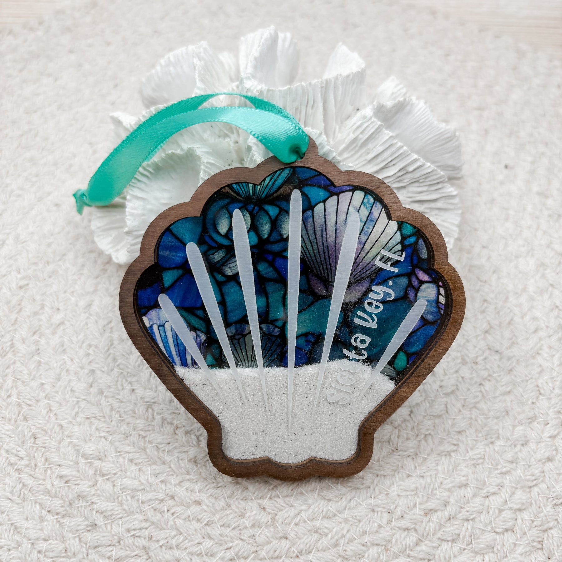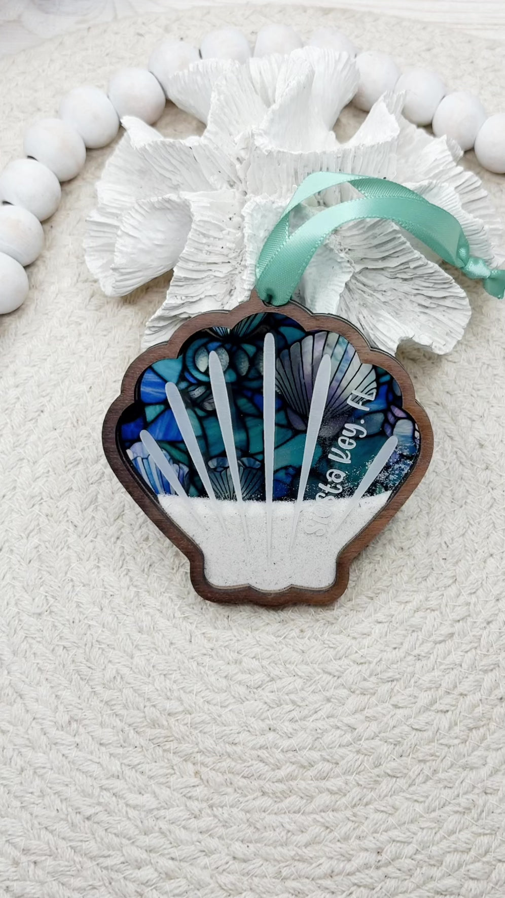 You provide the sand and memories, we provide the keepsake! These ornaments are designed to hold a small amount of beach sand as a keepsake. Made from 4 separate layers of material and available in solid walnut hardwood. Personalization on the acrylic layer is included in the price! Please indicate your desired personalization in the 'Personalization' box.